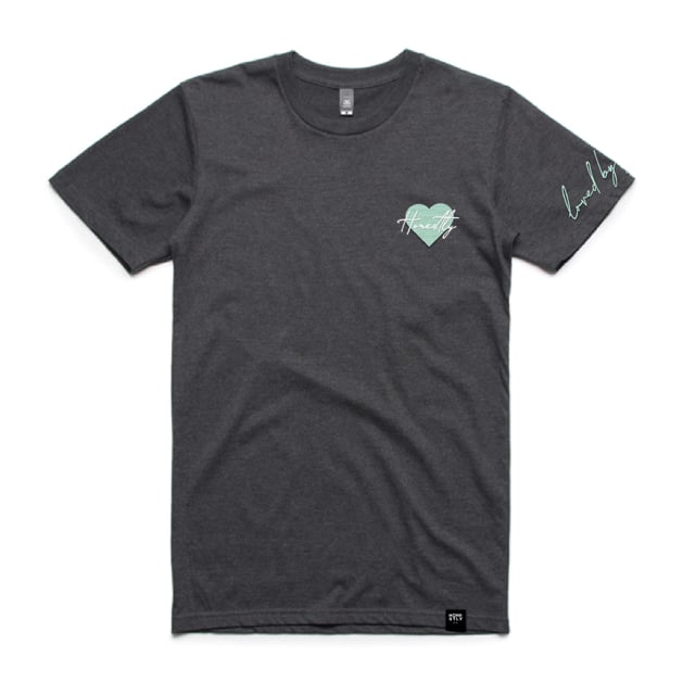 Limited edition embroidered "Loved By You" single T-Shirt with left chest and left sleeve designs.